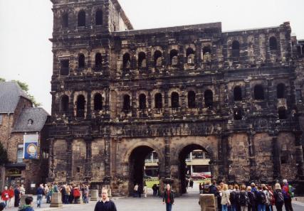 This is the "Porta Nigra" which was one of the gates to Trier erected by the Romans. Towards the end of the Roman Empire, Trier was one of its capitals. A large cache of gold coins from this period was found not far from here and are on display in a museum in Trier.