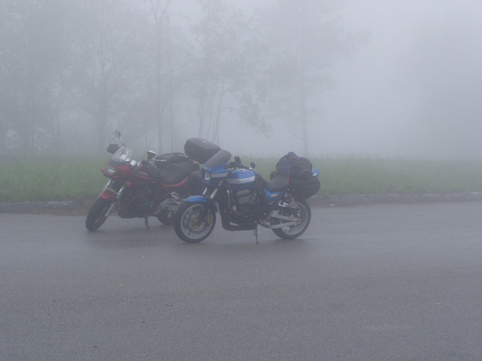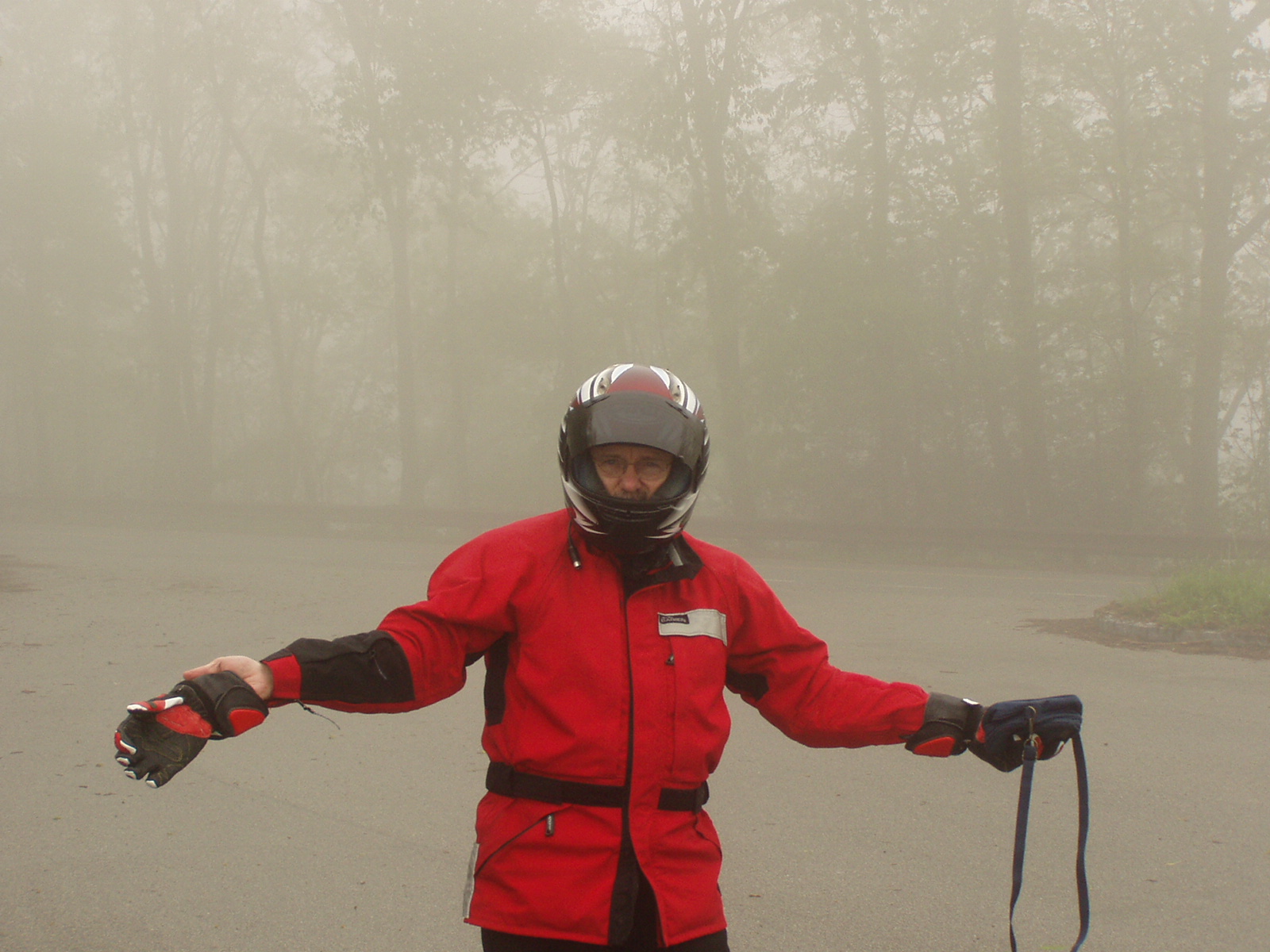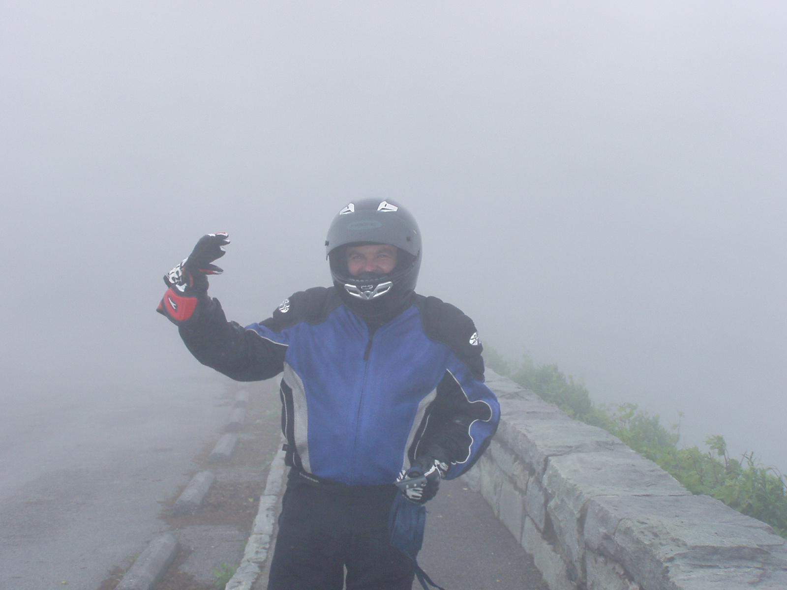 Our route takes across the Cherohola Skyway to Robbinsville, NC. My wife bought me finger squeegies from the Aerostitch catalog and they work very well in the fog (as long as you can keep them on your finger).
