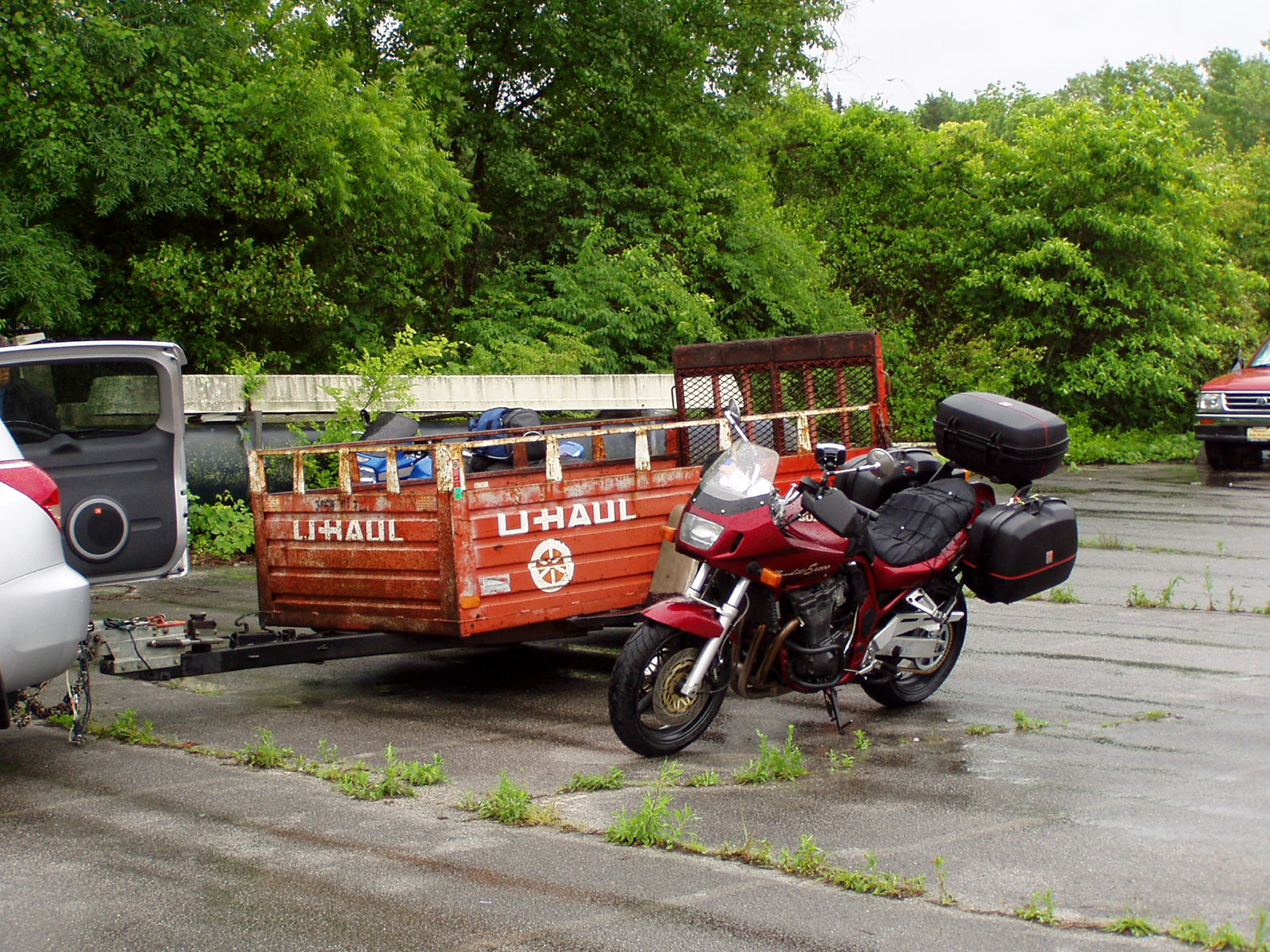 Since we've traveled almost 1000 miles to get here we have to pick up the "required" goodies (you know...T-shirts, stickers AND license plate frame. What, again, is required?). Even though it raining pretty well, there are a lot of bikes. We load our goodies into the saddle bags and then head back to the hotel 20 soggy miles away.
