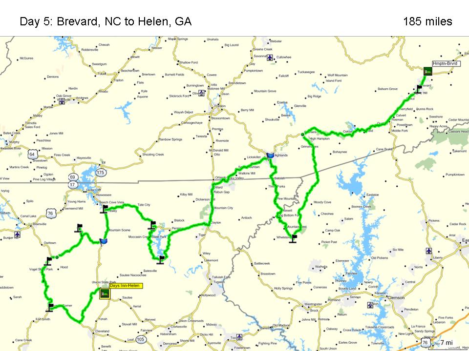 That night the trip ended by walking into Helen and having a couple Warsteiner Dark beers with dinner and just watching the Chattahoochee River do its thing (whatever thing rivers do). As we discuss the trip we realize how the days flow into each other; was it only Sunday we started riding? Seems like we had been riding for at least two weeks!
